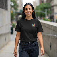 Double the diseño, double the pride. Large back print featuring our iconic three figures, small left-chest logo on the front. Screen-printed in white on premium cotton, comfortable all-day fit. Represent the comunidad wherever you go. Made using 100% US cotton that is ethically grown and harvested. EU representative: HONSON VENTURES LIMITED, gpsr@honsonventures.com, 3, Gnaftis House flat 102, Limassol, Mesa Geitonia, 4003, CY Product information: Gildan 5000, 2 year warranty in EU and Northern Ireland as per Directive 1999/44/EC Warnings, Hazard: For adults, Made in Nicaragua Care instructions: Machine wash: cold (max 30C or 90F), Non-chlorine: bleach as needed, Tumble dry: low heat, Do not iron, Do not dryclean